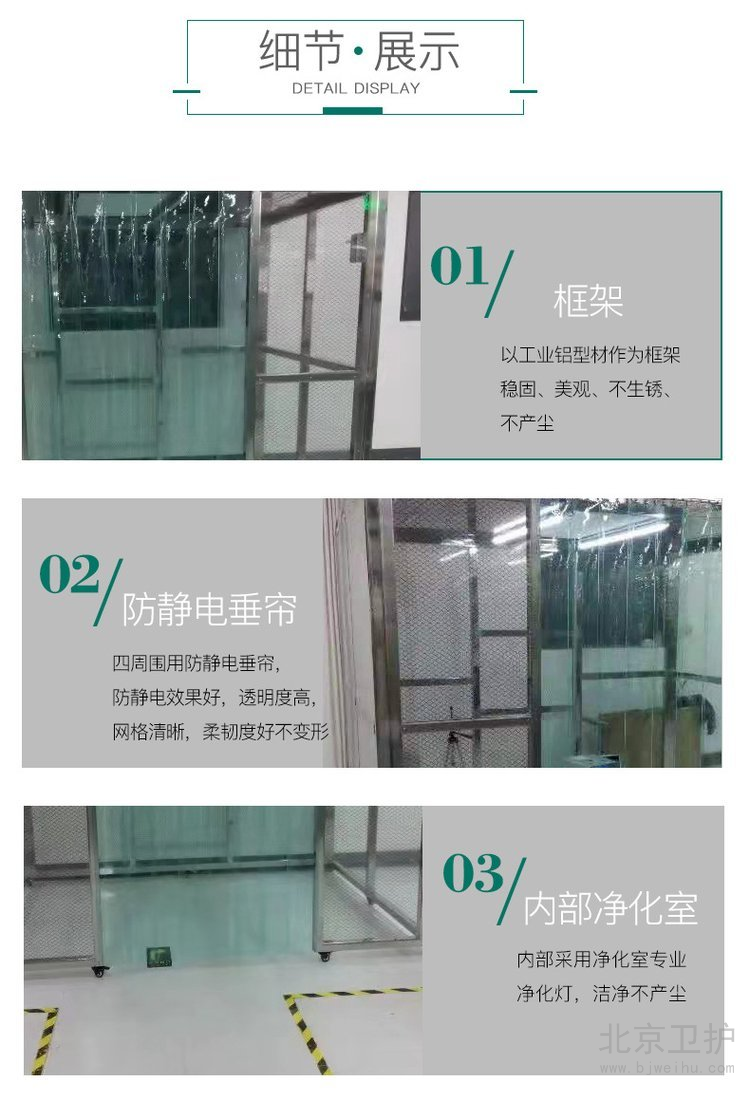 潔凈工作棚(簡稱:潔凈棚)(CLEAN BOOTH)是為快速方便建立的一座簡易潔凈室,潔凈棚具備多種潔凈等級及空間搭配可以根據(jù)使用需求設(shè)計制作,因此其簡便運用彈性大安裝容易且施工期短以及可移性為其主要特點,潔凈工作棚同時可針對在一般等級的潔凈室中局部地區(qū)需要高潔凈度的地方做局部增設(shè)以降低成本。潔凈工作棚是一種可提供局部高潔凈環(huán)境的空氣凈化設(shè)備。潔凈棚主要由箱體、風機、初效空氣過濾器、阻尼層、燈具等組成,外殼噴塑。該產(chǎn)品既可懸掛,又可地面支撐,結(jié)構(gòu)緊湊,使用方便??梢詥蝹€使用,也可多個連接組成帶狀潔凈區(qū)域。